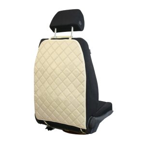Protectie auto matlasata, din piele ecologica Bej, pentru spatarul scaunului din fata, universala, impermeabila, lavabila